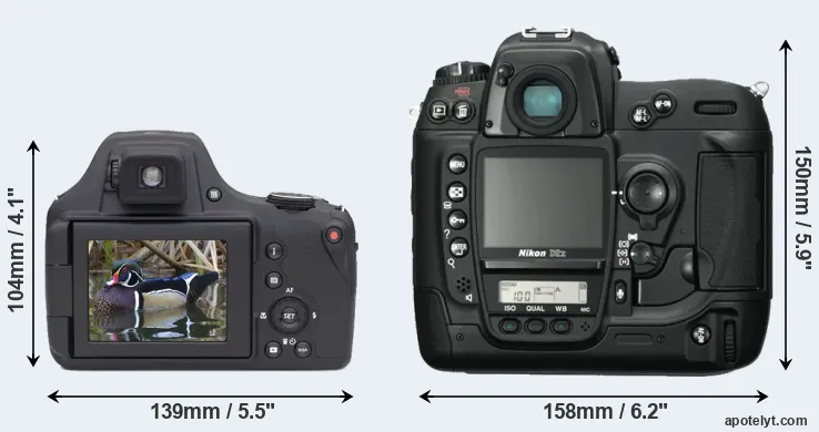 | 8. | Nikon D2Xs | 158 mm | 150 mm | 86 mm | 1252 g | 3800 | Y | Jun 2006 | EUR 5 069 | ebay.com | |