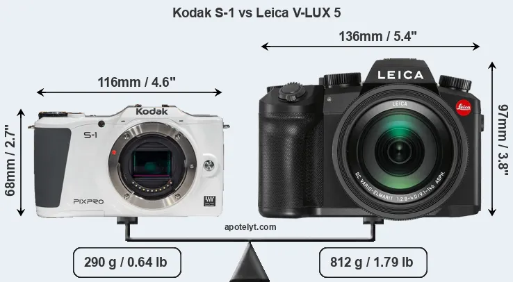 Going beyond this snapshot of core features and characteristics, what are the differences between the Kodak PixPro S-1 and the Leica V-LUX 5? Which one should you buy? Read on to find out how these two cameras compare with respect to their body size, their imaging sensors, their shooting features, their input-output connections, and their reception by expert reviewers.