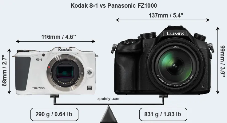 | Body Specs | Kodak S-1 | Panasonic FZ1000 |