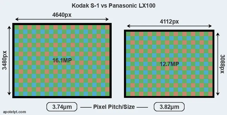 | Sensor Specs | Kodak S-1 | Panasonic LX100 |