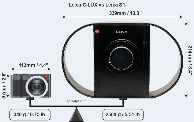The above size and weight comparisons are to some extent incomplete and possibly misleading, as the C-LUX has a lens built in, whereas the S1 is an interchangeable lens camera that requires a separate lens. Attaching the latter will add extra weight and bulk to the setup. You can compare the optics available for the S1 and their specifications in the Leica R Lens Catalog.