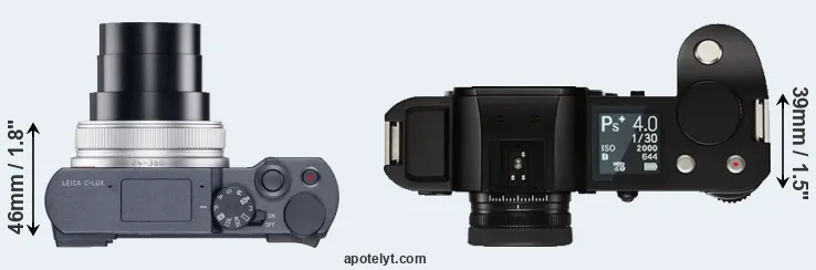 The above size and weight comparisons are to some extent incomplete and possibly misleading, as the C-LUX has a lens built in, whereas the Leica SL is an interchangeable lens camera that requires a separate lens. Attaching the latter will add extra weight and bulk to the setup.