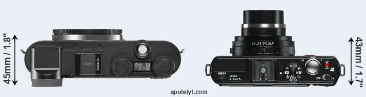 The above size and weight comparisons are to some extent incomplete and possibly misleading, as the D-LUX 5 has a lens built in, whereas the CL is an interchangeable lens camera that requires a separate lens. Attaching the latter will add extra weight and bulk to the setup.