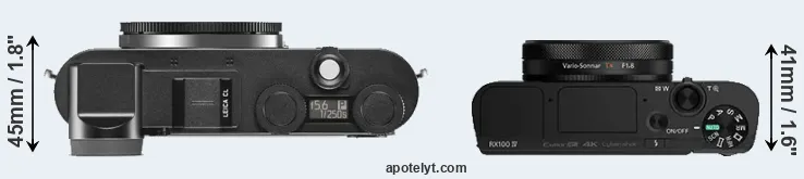 If the front view area (width x height) of the cameras is taken as an aggregate measure of their size, the Sony RX100 IV is considerably smaller (42 percent) than the Leica CL. In this context, it is worth noting that neither the CL nor the RX100 IV are weather-sealed.