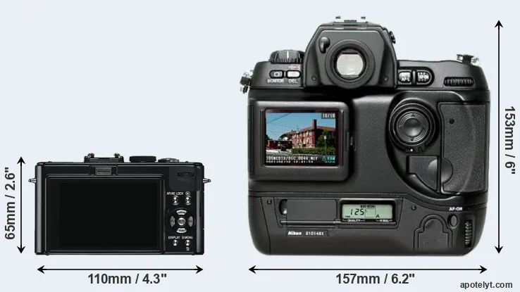 | 2. | Nikon D1H | 157 mm | 153 mm | 85 mm | 1100 g | 1200 | Y | Feb 2001 | US$ 4 499 | ebay.com | |