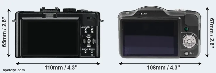 If the front view area (width x height) of the cameras is taken as an aggregate measure of their size, the Panasonic GF3 is somewhat larger (1 percent) than the Leica D-LUX 5. In this context, it is worth noting that neither the D-LUX 5 nor the GF3 are weather-sealed.