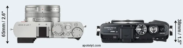 If the front view area (width x height) of the cameras is taken as an aggregate measure of their size, the Olympus E-PL7 is somewhat larger (2 percent) than the Leica D-LUX 7. In this context, it is worth noting that neither the D-LUX 7 nor the E-PL7 are weather-sealed.