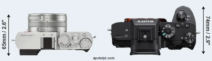 The above size and weight comparisons are to some extent incomplete and possibly misleading, as the D-LUX 7 has a lens built in, whereas the A7R III is an interchangeable lens camera that requires a separate lens. Attaching the latter will add extra weight and bulk to the setup. You can compare the optics available for the A7R III and their specifications in the Sony FE Lens Catalog.