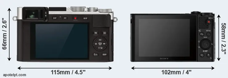 The side-by-side display below illustrates the physical size and weight of the Leica D-LUX 7 and the Sony HX80. The two cameras are presented according to their relative size. Three consecutive perspectives from the front, the top, and the back are available. All width, height and depth measures are rounded to the nearest millimeter.