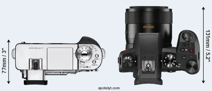 The Leica Digilux 3 and the Leica V-LUX 5 are two digital cameras that were announced, respectively, in September 2006 and July 2019. The Digilux 3 is a DSLR, while the V-LUX 5 is a fixed lens compact. The cameras are based on a Four Thirds (Digilux 3) and an one-inch (V-LUX 5) sensor. The Digilux 3 has a resolution of 7.4 megapixels, whereas the V-LUX 5 provides 20 MP.