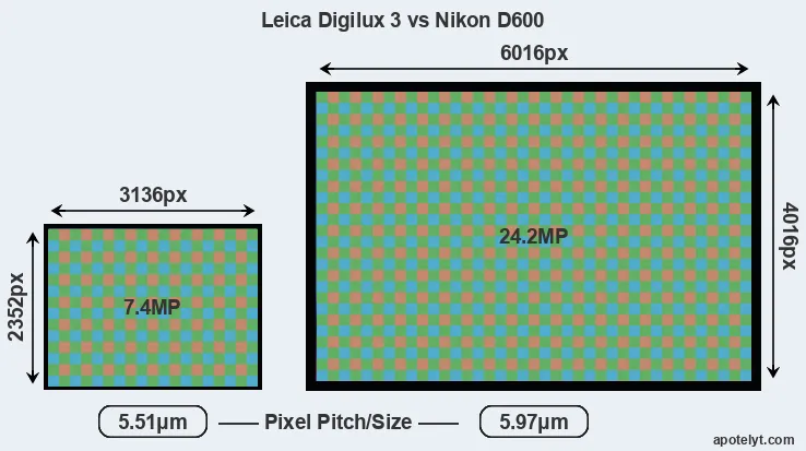 | Sensor Specs | Leica Digilux 3 | Nikon D600 |