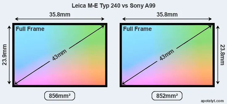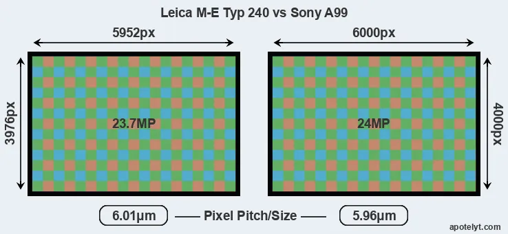 | Sensor Specs | Leica M-E Typ 240 | Sony A99 |