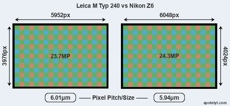 | Sensor Specs | Leica M Typ 240 | Nikon Z6 |
