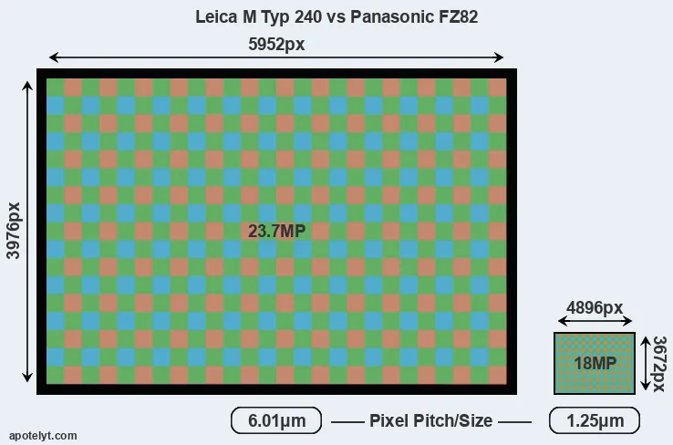 | Sensor Specs | Leica M Typ 240 | Panasonic FZ82 |
