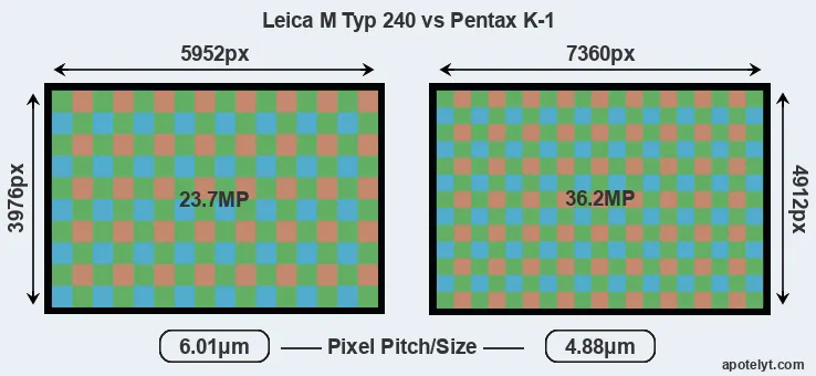 | Sensor Specs | Leica M Typ 240 | Pentax K-1 |