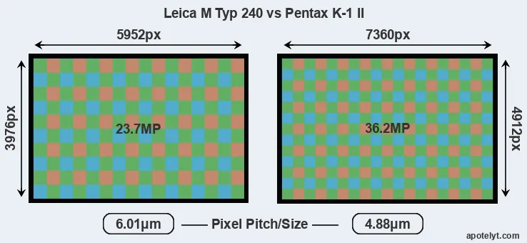 | Sensor Specs | Leica M Typ 240 | Pentax K-1 II |