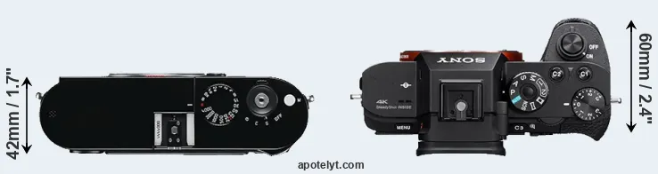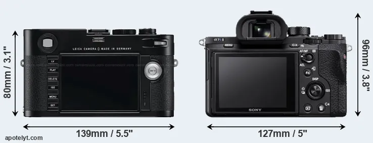 The above size and weight comparisons are to some extent incomplete since they do not consider the interchangeable lenses that both of these cameras require. Both cameras have similarly sized sensors, but DSLRs have a larger flange-to-focal plane distance than mirrorless cameras, which imposes contraints on the optical engineering process and generally leads to bigger and heavier lenses. You can compare the optics available for the two cameras in the Leica M Lens Catalog (M Typ 240) and the Sony FE Lens Catalog (A7S II).