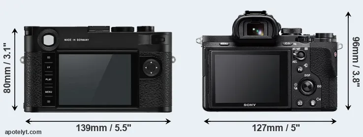 The above size and weight comparisons are to some extent incomplete since they do not consider the interchangeable lenses that both of these cameras require. Both cameras have similarly sized sensors, but DSLRs have a larger flange-to-focal plane distance than mirrorless cameras, which imposes contraints on the optical engineering process and generally leads to bigger and heavier lenses. You can compare the optics available for the two cameras in the Leica M Lens Catalog (M10-P) and the Sony FE Lens Catalog (A7 II).