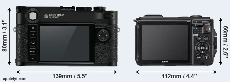 Going beyond this snapshot of core features and characteristics, what are the differences between the Leica M10 (Typ 3656) and the Nikon Coolpix W300? Which one should you buy? Read on to find out how these two cameras compare with respect to their body size, their imaging sensors, their shooting features, their input-output connections, and their reception by expert reviewers.