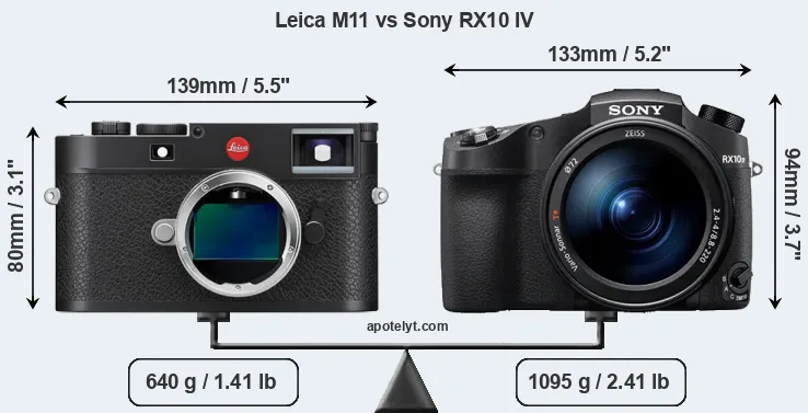 The above size and weight comparisons are to some extent incomplete and possibly misleading, as the RX10 IV has a lens built in, whereas the M11 is an interchangeable lens camera that requires a separate lens. Attaching the latter will add extra weight and bulk to the setup. You can compare the optics available for the M11 and their specifications in the Leica M Lens Catalog.