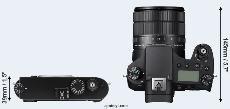 If the front view area (width x height) of the cameras is taken as an aggregate measure of their size, the Sony RX10 IV is notably larger (12 percent) than the Leica M11. In this context, it is worth noting that both cameras are splash and dust-proof and can, hence, be used in inclement weather conditions or harsh environments.