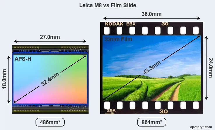 The Leica M8 features an APS-H sensor and has a format factor (sometimes also referred to as "crop factor") of 1.3. Within the spectrum of camera sensors, this places the Leica M8 among the large-sensor cameras that aim for top notch image quality.