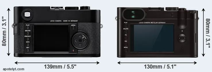 If the front view area (width x height) of the cameras is taken as an aggregate measure of their size, the Leica Q Typ 116 is notably smaller (6 percent) than the Leica M8. In this context, it is worth noting that neither the M8 nor the Q Typ 116 are weather-sealed.