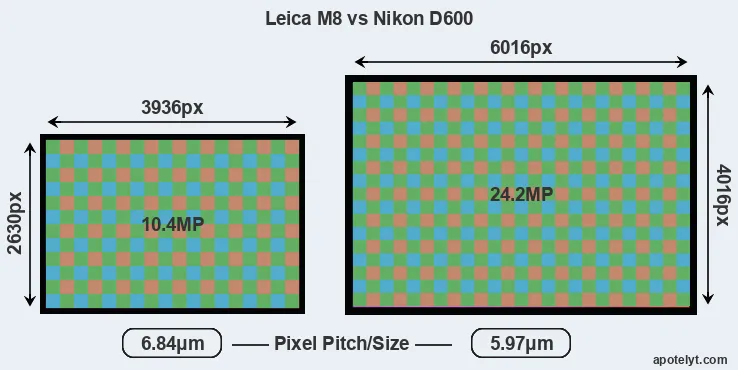 | Sensor Specs | Leica M8 | Nikon D600 |