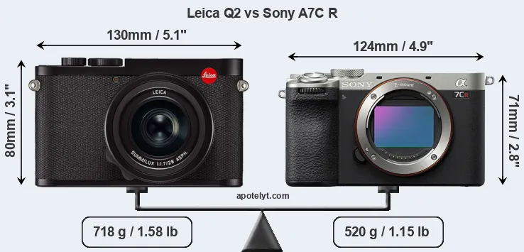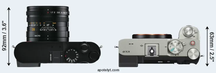 The above size and weight comparisons are to some extent incomplete and possibly misleading, as the Q2 has a lens built in, whereas the A7C R is an interchangeable lens camera that requires a separate lens. Attaching the latter will add extra weight and bulk to the setup. You can compare the optics available for the A7C R and their specifications in the Sony FE Lens Catalog.