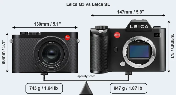 The above size and weight comparisons are to some extent incomplete and possibly misleading, as the Q3 has a lens built in, whereas the Leica SL is an interchangeable lens camera that requires a separate lens. Attaching the latter will add extra weight and bulk to the setup.
