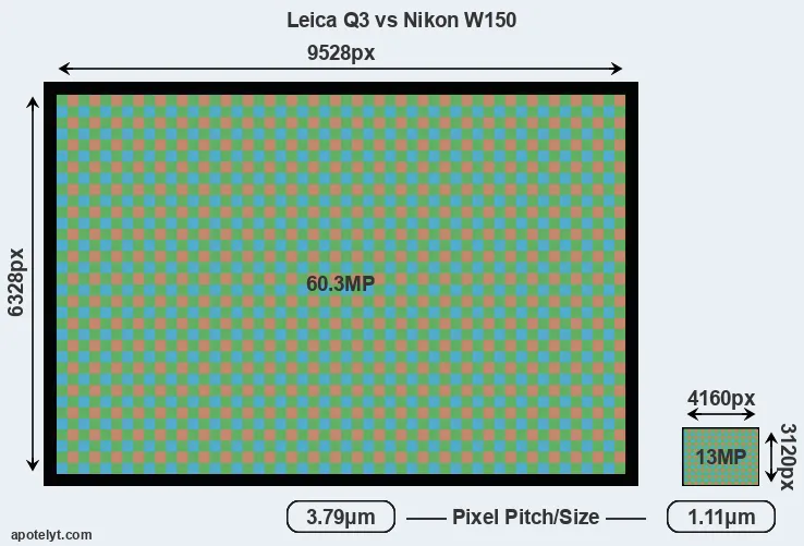 | Sensor Specs | Leica Q3 | Nikon W150 |