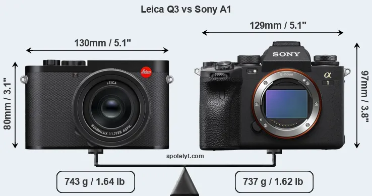 The above size and weight comparisons are to some extent incomplete and possibly misleading, as the Q3 has a lens built in, whereas the A1 is an interchangeable lens camera that requires a separate lens. Attaching the latter will add extra weight and bulk to the setup. You can compare the optics available for the A1 and their specifications in the Sony FE Lens Catalog.