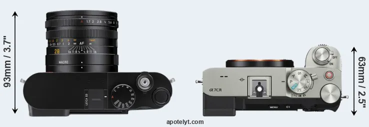 The above size and weight comparisons are to some extent incomplete and possibly misleading, as the Q3 has a lens built in, whereas the A7C R is an interchangeable lens camera that requires a separate lens. Attaching the latter will add extra weight and bulk to the setup. You can compare the optics available for the A7C R and their specifications in the Sony FE Lens Catalog.