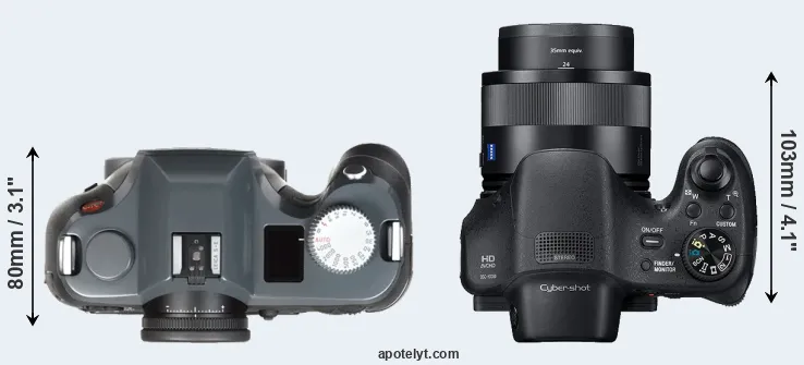 The above size and weight comparisons are to some extent incomplete and possibly misleading, as the HX350 has a lens built in, whereas the S-E Typ 006 is an interchangeable lens camera that requires a separate lens. Attaching the latter will add extra weight and bulk to the setup.