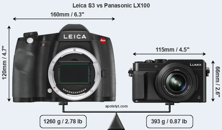 | Body Specs | Leica S3 | Panasonic LX100 |