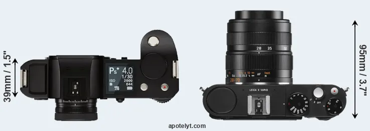 The above size and weight comparisons are to some extent incomplete and possibly misleading, as the X Vario has a lens built in, whereas the Leica SL is an interchangeable lens camera that requires a separate lens. Attaching the latter will add extra weight and bulk to the setup.