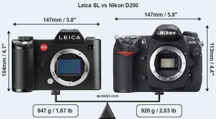 Going beyond this snapshot of core features and characteristics, what are the differences between the Leica SL (Typ 601) and the Nikon D200? Which one should you buy? Read on to find out how these two cameras compare with respect to their body size, their imaging sensors, their shooting features, their input-output connections, and their reception by expert reviewers.