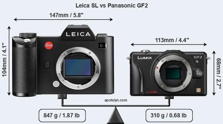 Going beyond this snapshot of core features and characteristics, what are the differences between the Leica SL (Typ 601) and the Panasonic Lumix DMC-GF2? Which one should you buy? Read on to find out how these two cameras compare with respect to their body size, their imaging sensors, their shooting features, their input-output connections, and their reception by expert reviewers.