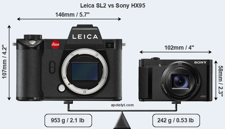 The above size and weight comparisons are to some extent incomplete and possibly misleading, as the HX95 has a lens built in, whereas the Leica SL2 is an interchangeable lens camera that requires a separate lens. Attaching the latter will add extra weight and bulk to the setup.