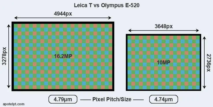 | Sensor Specs | Leica T | Olympus E-520 |