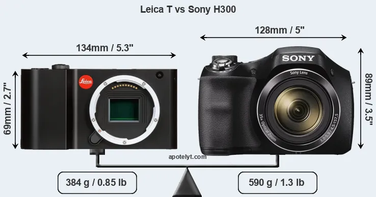 If the front view area (width x height) of the cameras is taken as an aggregate measure of their size, the Sony H300 is notably larger (23 percent) than the Leica T. In this context, it is worth noting that neither the T Typ 701 nor the H300 are weather-sealed.