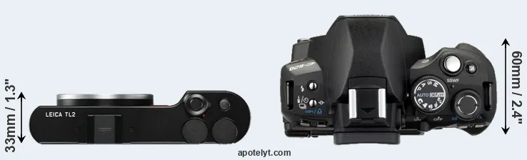 | 12. | Leica TL | 134 mm | 69 mm | 33 mm | 384 g | 400 | n | Nov 2016 | US$ 1 695 | ebay.com | |