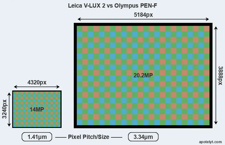| Sensor Specs | Leica V-LUX 2 | Olympus PEN-F |