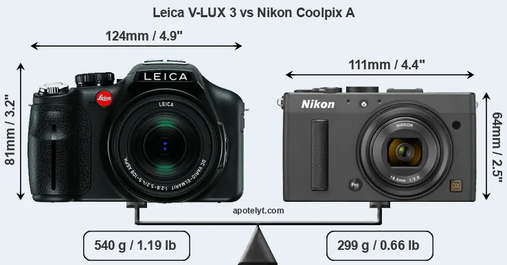 | Body Specs | Leica V-LUX 3 | Nikon Coolpix A |
