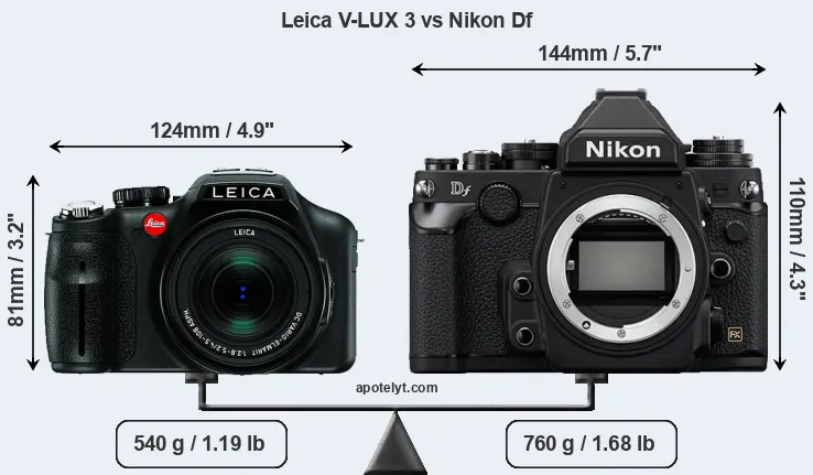Size Leica V-LUX 3 vs Nikon Df