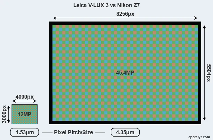| Sensor Specs | Leica V-LUX 3 | Nikon Z7 |