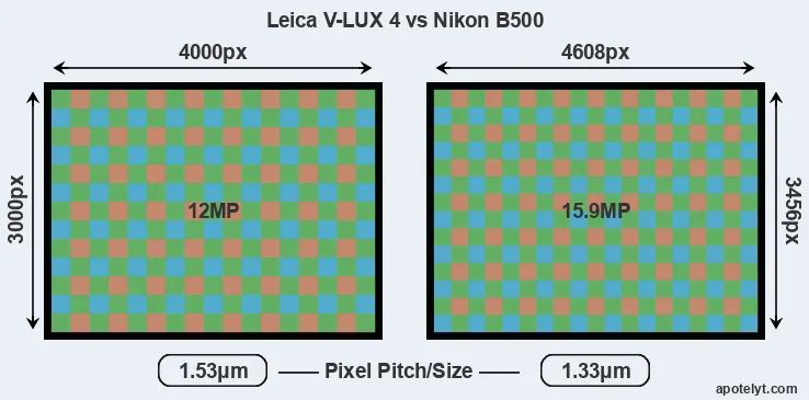| Sensor Specs | Leica V-LUX 4 | Nikon B500 |