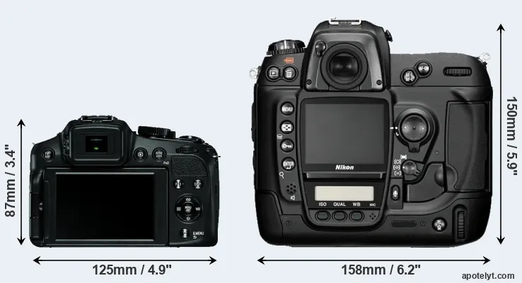 | 11. | Nikon D1H | 157 mm | 153 mm | 85 mm | 1100 g | 1200 | Y | Feb 2001 | US$ 4 499 | ebay.com | |