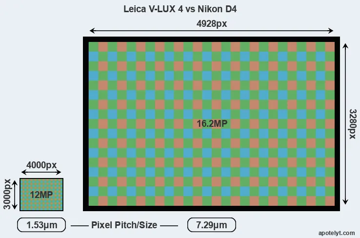 | Sensor Specs | Leica V-LUX 4 | Nikon D4 |