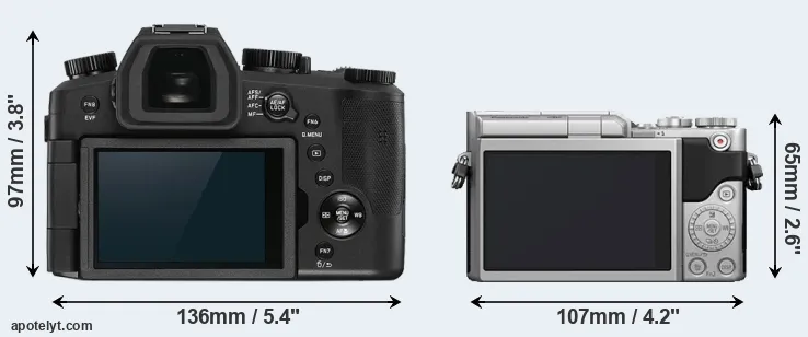 The above size and weight comparisons are to some extent incomplete and possibly misleading, as the V-LUX 5 has a lens built in, whereas the GX850 is an interchangeable lens camera that requires a separate lens. Attaching the latter will add extra weight and bulk to the setup. You can compare the optics available for the GX850 and their specifications in the Micro Four Thirds Lens Catalog.